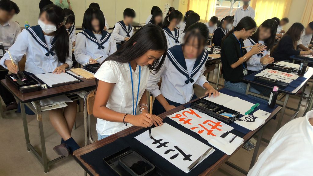 滞在中は、英語の授業だけでなく、数学、家庭科、体育などの授業にも参加し、日本の高校生活を実際に体験しました。さらに、書道や茶道、着付けなどの日本文化体験にも挑戦し、日本の伝統にふれる貴重な機会となりました。