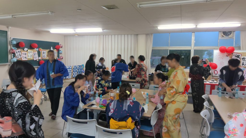 フェアウェルパーティでは、縁日風の催しを行い、太鼓演奏や盆踊りを一緒に楽しむなど、笑顔あふれる交流の時間となりました。短い期間でしたが、生徒たちは言葉や文化の違いを超えて、心温まる友情を育むことができました。