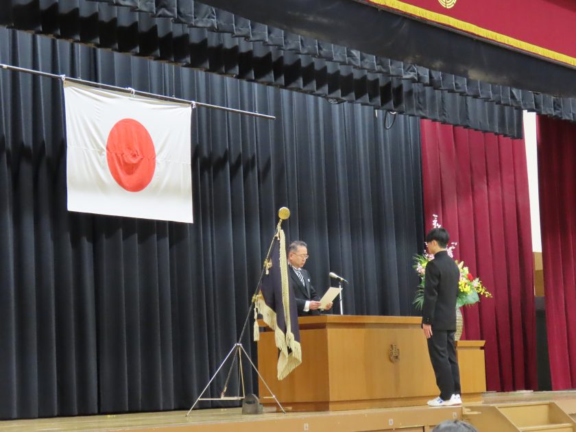 式では校長から普通科、国際教養科、それぞれの総代へ卒業証書が手渡されました。