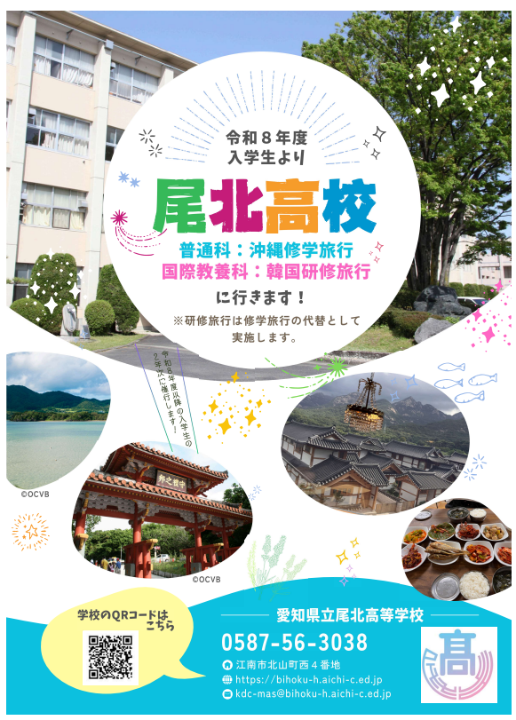 目次 令和8年度愛知県立尾北高等学校普通科推薦選抜実施要項 令和8年度愛知県立尾北高等学校国際教養科推薦選抜実施要項 令和8年度愛知県立尾北高等学校国際教養科特色選抜実施要項